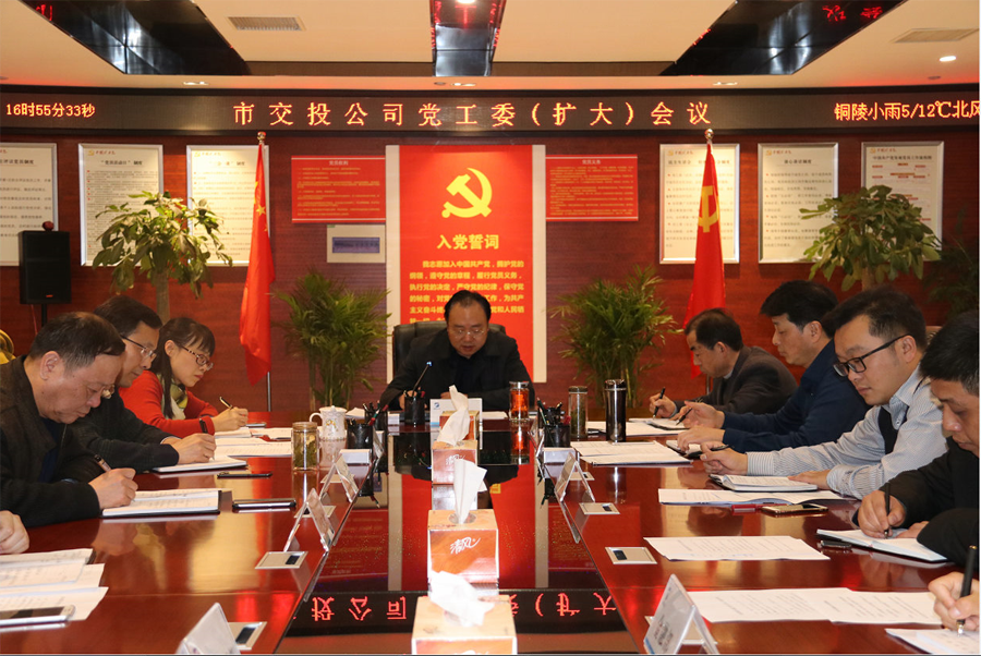 2018年2月24日下午,市交投公司召開黨工委(擴大)會議,傳達學習24日上午全市黨務工作會議內容和市委李猛書記講話精神,公司黨工委班子成員、全體中層以上干部參加會議。會議指出,市委高度重視黨務工作,作為組建成立不久的新交投公司,在轉型發(fā)展的開局起步之年,貫徹落實好全市黨務工作會議精神和李猛書記講話要求,對全年各項工作的推動和主要目標的實現具有十分重要的意義。