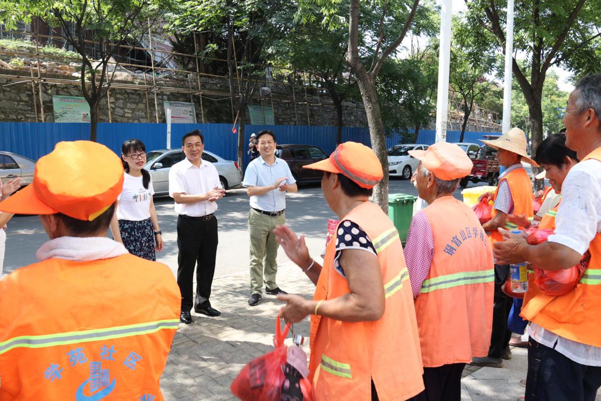 8月7日上午,集團公司黨工委委員、副總經(jīng)理范美霞率隊前往銅官區(qū)學苑社區(qū)看望慰問環(huán)衛(wèi)工人,開展“三包兩?!眲?chuàng)建督導工作。