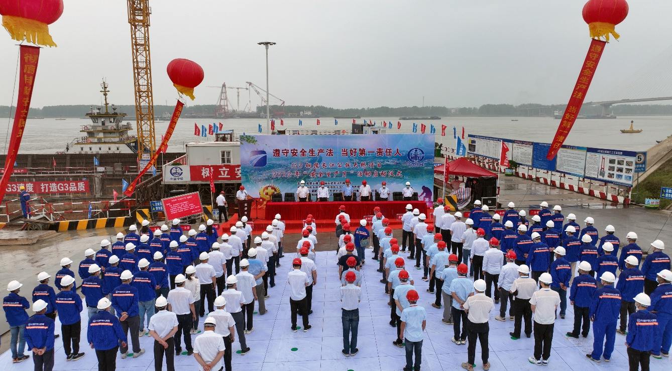 6月1日上午9時(shí),在G3銅陵長(zhǎng)江公鐵大橋4#墩施工現(xiàn)場(chǎng)舉辦2022年“安全生產(chǎn)月”啟動(dòng)儀式,全體建設(shè)者進(jìn)行現(xiàn)場(chǎng)莊嚴(yán)宣誓。
