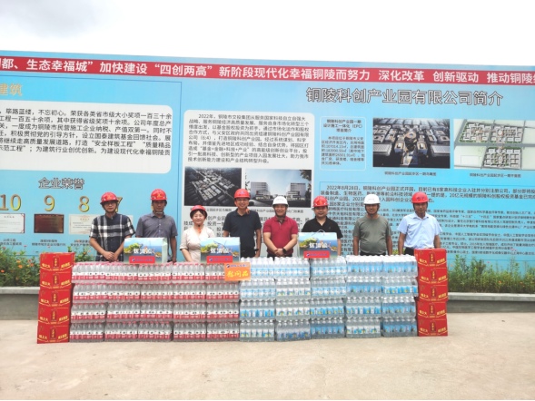 在銅陵科創(chuàng)產(chǎn)業(yè)園一期施工現(xiàn)場,集團(tuán)公司黨委委員、副總經(jīng)理湯世才在工會相關(guān)同志的陪同下,給奮戰(zhàn)在施工一線的建設(shè)者們送上防暑降溫慰問品。他叮囑大家要合理調(diào)整作息時間,通過多班組輪崗等方式,合理安排施工時間,避開高溫時段,確保工人施工安全;要通過優(yōu)化提升現(xiàn)場施工組織,做好施工標(biāo)準(zhǔn)化及安全防護(hù)工作,確保項目安全、穩(wěn)步推進(jìn)。