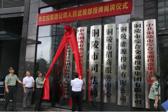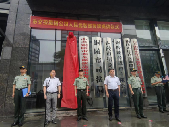 儀式上宣讀了交投集團武裝部專武部長任職命令;王勇宣讀了市委市政府、銅陵軍分區(qū)關于同意設立交投集團武裝部的批復;魏江、王勇共同為交投集團武裝部揭牌。