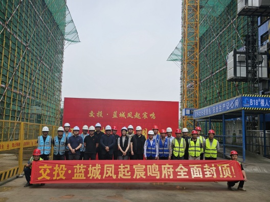 5月12日上午,萬里晴空,惠風(fēng)和暢,鳳起宸鳴項目施工現(xiàn)場掌聲雷動。隨著B18號樓屋面混凝土開始澆筑,意味著項目主體整體封頂。交投置業(yè)總經(jīng)理趙麗及所有參建單位相關(guān)負(fù)責(zé)人共同見證了項目開工以來最為激動人心的階段性成果。