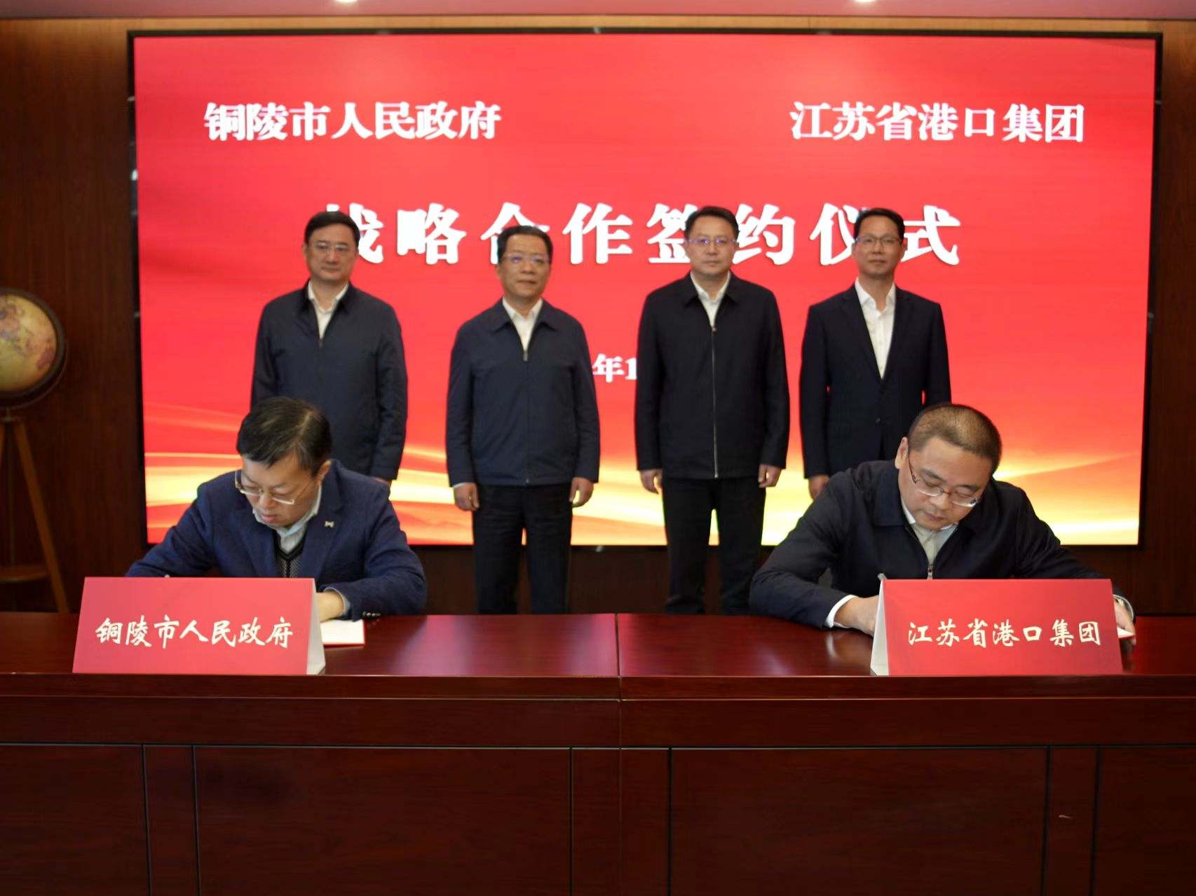 11月11日上午,市政府與江蘇省港口集團(tuán)戰(zhàn)略合作協(xié)議簽約儀式在南京舉行。市委書記丁純,江蘇省港口集團(tuán)黨委書記、董事長陳明出席并講話。江蘇省港口集團(tuán)黨委副書記、總經(jīng)理王洪濤主持儀式。市領(lǐng)導(dǎo)馬軍、楊如松,江蘇省港口集團(tuán)領(lǐng)導(dǎo)顧國華、張旭出席并見證簽約,集團(tuán)公司領(lǐng)導(dǎo)吳世偉、龍道寧、黃勇,市發(fā)改委、市交通局、郊區(qū)主要負(fù)責(zé)同志參加活動。