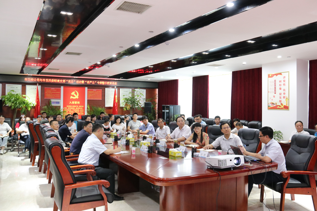 為認真貫徹落實省、市委部署要求,扎實推進公司“講嚴立”專題警示教育,7月18日下午,公司與市發(fā)改委聯(lián)建支部開展“黨日”活動暨“講嚴立”專題警示教育輔導講座,講座由公司黨工委書記、董事長何成龍主持,市發(fā)改委副主任方永杰、公司黨工委班子成員、機關中層以上干部,各子公司負責人、職工黨員及市發(fā)改委第五黨支部全體黨員參加活動。
