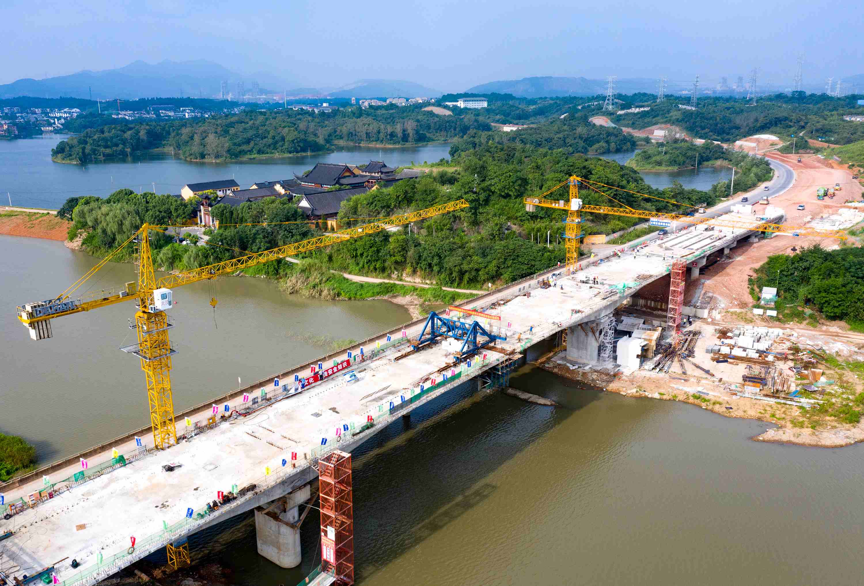 8月28日下午,銅陵市G236青通河大橋改建工程青通河大橋左幅順利合龍。
