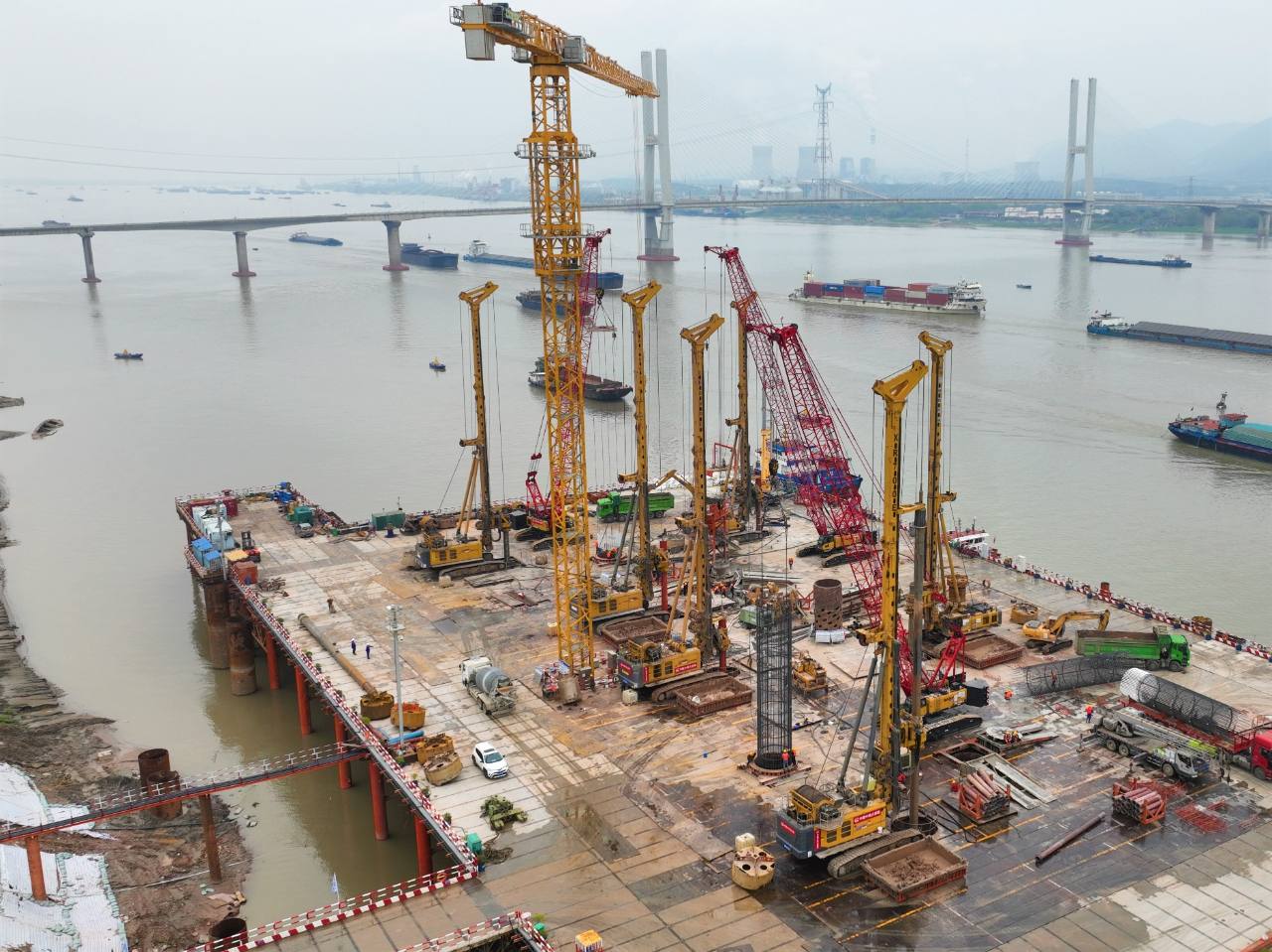 “我們堅決貫徹落實黨中央和地方政府的有關(guān)部署,一手抓防疫一手抓生產(chǎn),在做好各項防疫措施的前提下,有序、穩(wěn)步推進(jìn)現(xiàn)場的施工生產(chǎn)?!敝需F大橋局G3銅陵長江公鐵大橋項目部一分部總工程師宋海濤介紹,一分部采取了增加鉆機(jī)設(shè)備、優(yōu)化施工工藝、配置精兵強(qiáng)將、確保物資供應(yīng)等措施,三月份以來平均達(dá)到1天成樁1根的施工新紀(jì)錄,為后續(xù)圍堰及承臺施工提供了可靠的工期保障。“G3銅陵長江公鐵大橋是世界首座雙層斜拉-懸索協(xié)作體系大橋,3號墩和4號墩是大橋的兩個主墩,承載988米的主跨一跨過江?!敝需F大橋局G3銅陵長江公鐵大橋項目部一分部技術(shù)員王康介紹,3號主墩共有68根鉆孔樁,每根樁直徑3.0米,樁長95米,成孔深度達(dá)122.5米,入巖深度約71.4米,采取了旋挖鉆分級擴(kuò)鉆成孔工藝施工。
