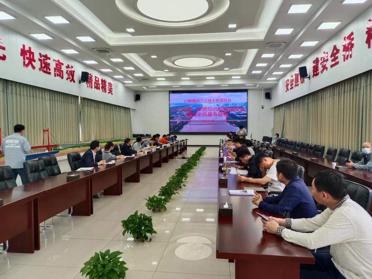 4月26日上午,G3銅陵長江公鐵大橋第一季度綜合檢查通報暨第一季度質(zhì)量、安全會議在G3長江公鐵大橋項(xiàng)目部會議室召開。集團(tuán)公司黨委委員、副總經(jīng)理湯世才參加會議。集團(tuán)公司工程部、G3長江公鐵大橋項(xiàng)目辦、各參建單位相關(guān)人員出席會議。