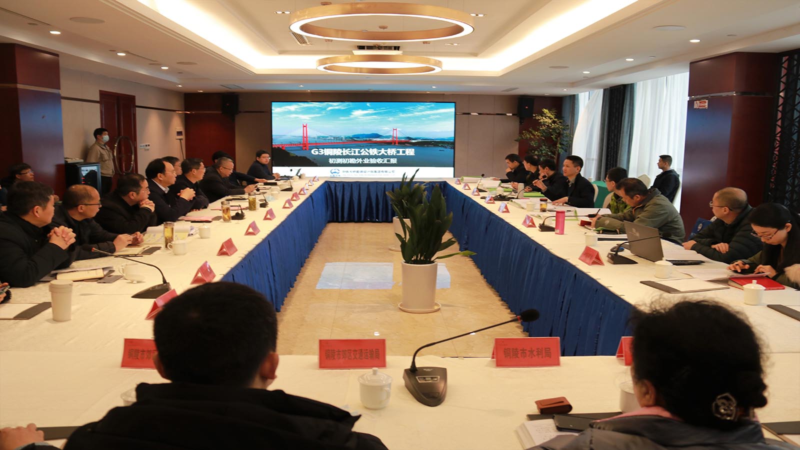 3月5日,G3銅陵長江公鐵大橋初測初勘外業(yè)驗收審查會召開。市政府副秘書長徐建農(nóng)、發(fā)改委副主任、市鐵路辦主任謝永明及市、區(qū)有關(guān)單位負(fù)責(zé)同志出席會議會議,集團(tuán)公司黨委書記、董事長何成龍,副總經(jīng)理湯世才參加會議。