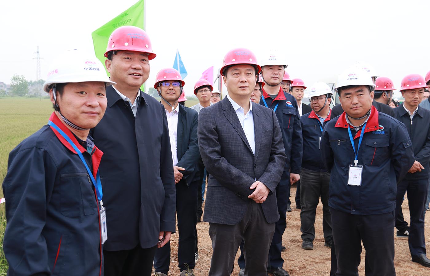 在項目施工現(xiàn)場,孔濤詳細了解項目建設進度等情況,并與在場工程人員一起見證了江北港鐵路專用線跨G347特大橋首樁施工,叮囑要以高質量、高效率、高標準的原則,咬定目標任務,強化節(jié)點意識,保障項目早建成、早運營,著力打造經得起檢驗的精品工程。